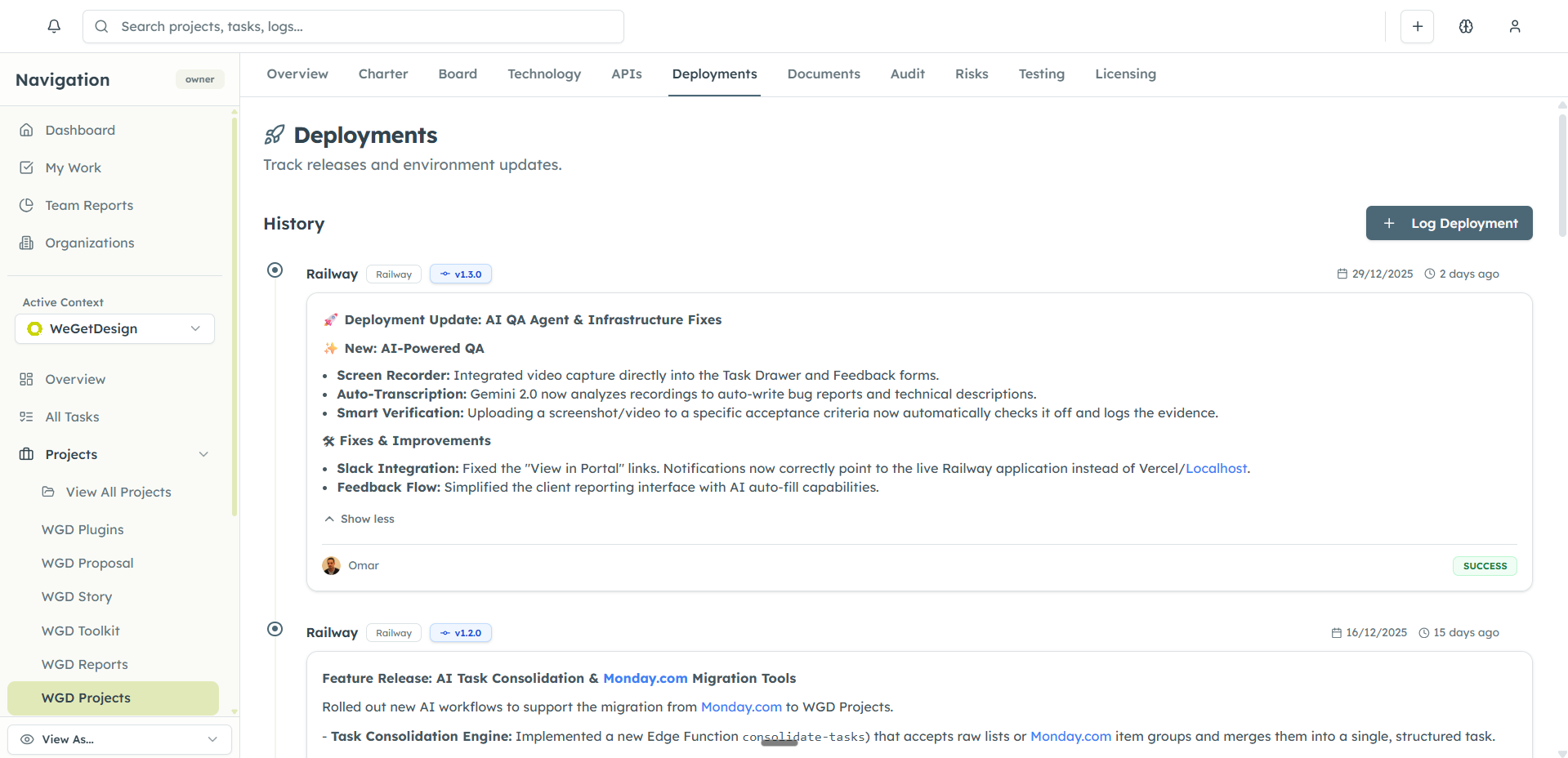 Every engagement is managed through our internal project platform, giving you structured visibility into progress, decisions, and delivery health.